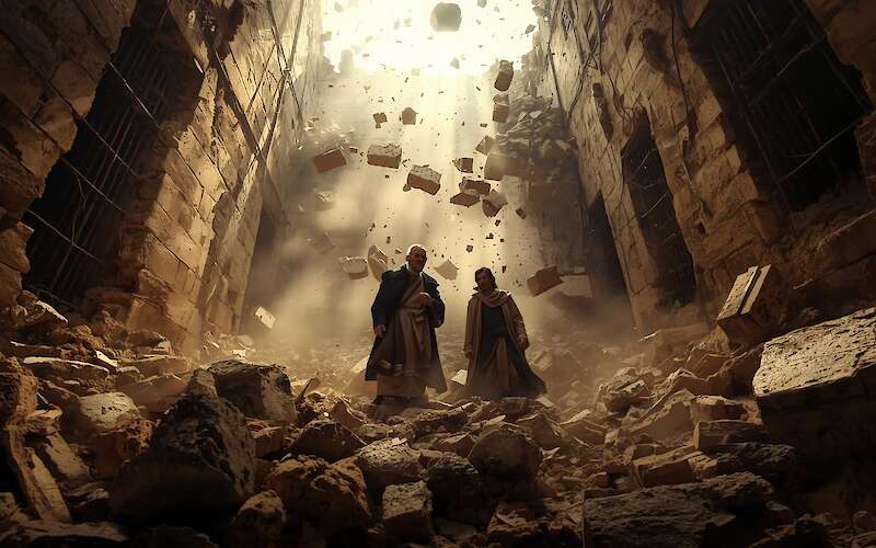 Erstaunlich dabei finde ich, dass die Theologie der Beiden das aushält. Sie haben eigentlich alles richtig gemacht und dennoch erleben sie Schweres, Schmerz, Verleumdung, Strafe und befinden sich in einer scheinbar ausweglosen Situation. Doch nicht nur das. Sie entscheiden sich auch noch, Gott mitten in der Nacht mit Liedern zu loben. In Apostelgeschichte 16,25 lesen wir: „Um Mitternacht beteten Paulus und Silas und priesen Gott in Lobgesängen.“ Dabei hätten sie allen Grund gehabt, schlecht gelaunt und pessimistisch zu sein. Und dann sind sie auch nicht allein im Gefängnis, sondern andere, vermutlich nicht so gut gelaunte Gefangene, hören mit zu. Doch trotzdem entscheiden sie sich zu singen und Gott zu danken.